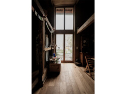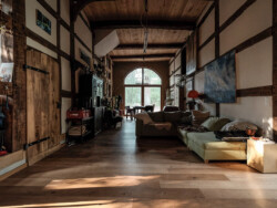 Um die ehemals sehr dunkle Wohndeele mit mehr Tageslicht zu versorgen, wurden an den Traufseiten großzügige Fensterelemente in Form einer „Lichtfuge“ eingefügt. Dadurch entstanden im Bereich der Hillen sogenannte „Lichtflure“, die wesentlich mehr Helligkeit in die Deele bringen. Zusätzlich wurden die innenliegenden Gefache zwischen Hillen und Deele größtenteils entfernt, um die Räume offener, heller und einladender zu gestalten.