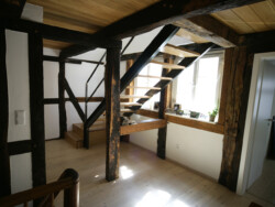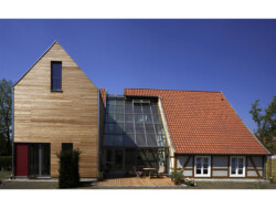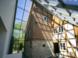Wie sich Altes und Neues zu einem reizvollen Ensemble verbinden lassen, zeigt dieses Gebäude. Auf dem Gelände der ehemaligen Stadtmauer, im Schatten des Wehrturmes, steht das denkmalgeschützte Fachwerkhaus, das saniert und durch einen modernen Anbau ergänzt wurde.
