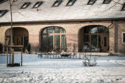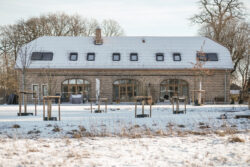Neben dem Gebäude betreuten die Architekten auch die Gestaltung des Nebengebäudes und der Außenanlagen, sodass im Kontext des vorhandenen Hofensembles ein stimmiges Gesamtkonzept entstand.