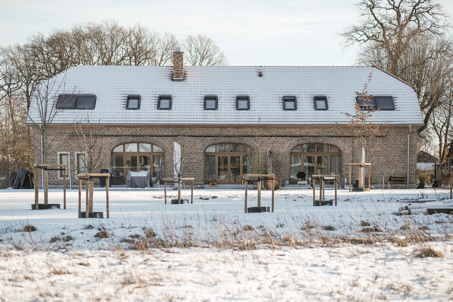 Das Gebäude wurde in den 1920er Jahren als landwirtschaftliche Scheune einer Hofstelle errichtet und nun behutsam zu einem zeitgemäßen Wohngebäude mit zwei Wohneinheiten umgebaut. Dabei wurde der historische Charakter des im Heimatschutzstil errichteten und für die Kulturlandschaft des frühen 20. Jahrhunderts prägenden Backsteinbaus bewusst bewahrt. Besonders prägend sind die drei Durchfahrtsdeelen mit ihren sechs charakteristischen Toren, die weiterhin als zentrales Gestaltungselement bestehen bleiben.