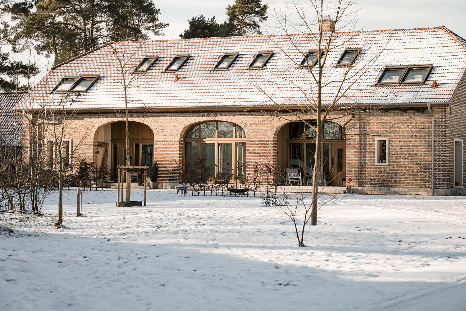 Neben dem Gebäude betreuten die Architekten auch die Gestaltung des Nebengebäudes und der Außenanlagen, sodass im Kontext des vorhandenen Hofensembles ein stimmiges Gesamtkonzept entstand.