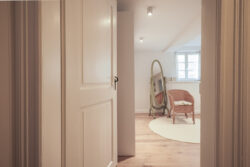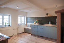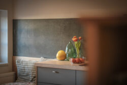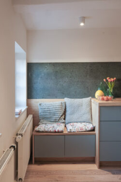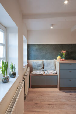 Der Umbau der kleinen Wohnung im historischen Fachwerk stellte besondere Anforderungen, denn die kompakten Räume verlangten nach einer Gestaltung, die möglichst viel Helligkeit zulässt. Unsere Leistungen umfassten dabei nicht nur die vollständige Planung der Innenarchitektur, sondern auch den Bau und den passgenauen Einbau der Küche sowie sämtlicher maßgefertigter Schränke.