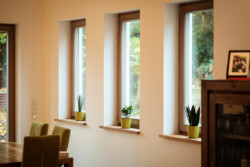 In enger Zusammenarbeit ist ein maßgeschneidertes Haus entstanden, das von außen damit glänzt, dass es sich in die bestehende Siedlungsstruktur einbindet und genauso auf dem Grundstück den bisherigen Bewohnern ihren Raum nicht streitig macht.