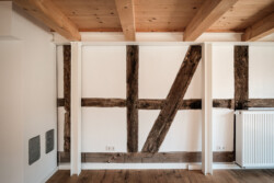 Mit dem Erwerb des Gebäudes samt Grundstück durch Herrn Matthias Schlüter im Jahr 2014 kam Bewegung in die Sache: Gemeinsam mit dem Geseker Unternehmer entwickelte das Architekturbüro Gröne Architektur GmbH ein Nutzungskonzept zur Revitalisierung der Fachwerkscheune. Dafür entstand ein Entwurf, der sowohl die denkmalgerechte Sanierung als auch einen ergänzenden Neubau im rückwärtigen Grundstücksbereich vorsieht.