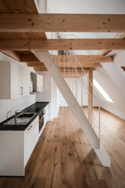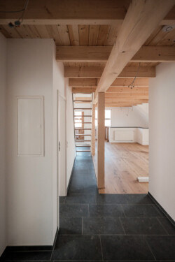 Durch die sensible Einbindung des Neubaus in die vorhandene Struktur entsteht ein neues bauliches Gefüge, das die städtebauliche Situation in diesem Bereich deutlich aufwertet. In der sanierten Fachwerkscheune werden künftig fünf Wohnungen sowie die Sozialstation der Caritas Soest untergebracht. Im Neubau entstehen vier Wohneinheiten im Erdgeschoss, sieben WG-Plätze sowie sieben Mikro-Apartments im Dachgeschoss.