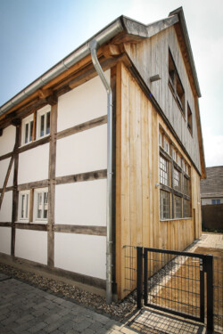 Geseke (GA). Verfaulte Holzschwellen, fehlende Gefache, beschädigte Dachpfannen – das waren nur einige der Schadensbilder der ehemaligen Wirtschaftsscheune von 1792. Das denkmalgeschützte Gebäude steht abseits des ursprünglichen Gasthofs in einem Hinterhof. Die Erschließung erfolgt über die Rosenstraße im Osten sowie den Hellweg im Süden.